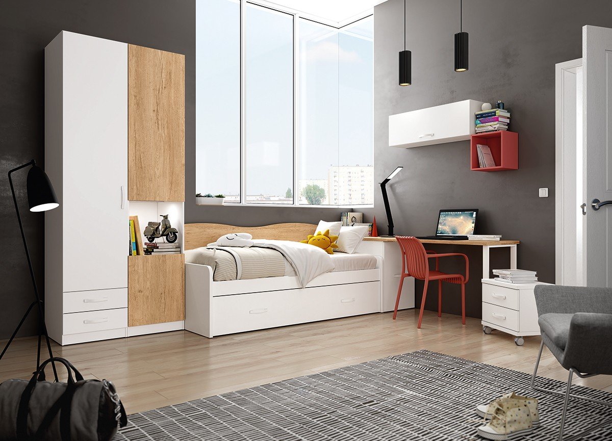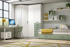 puente, sobre y buc de mesitas, xifonieres y comodines, estantes pared, lados inglete, quitamiedos de litera, librerías,